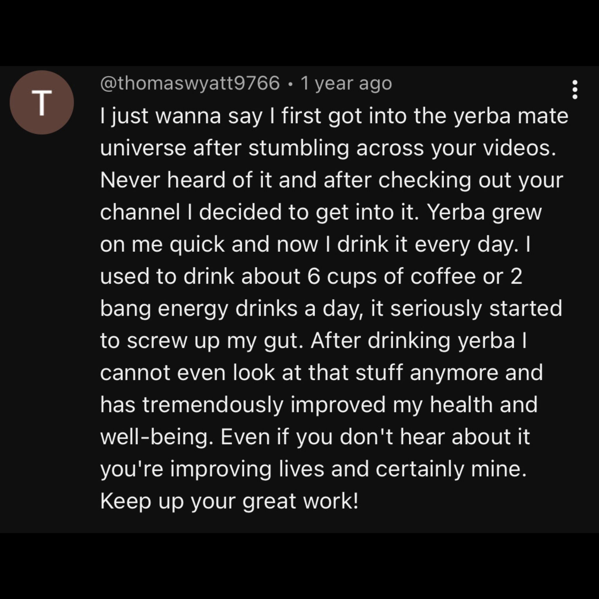 Yerba mate has a similar amount of caffeine per serving, but most people say the energy feels smoother and lasts longer, without the crash or jitters coffee can cause.